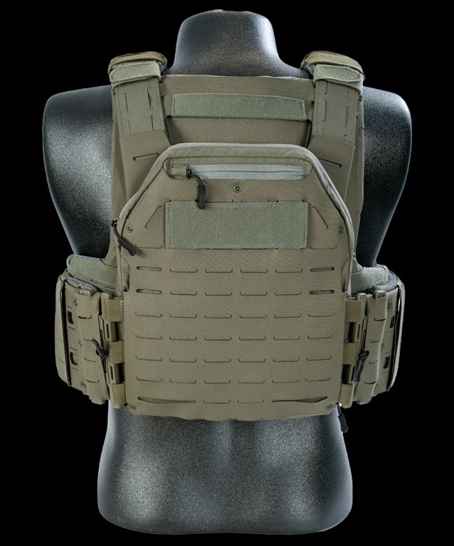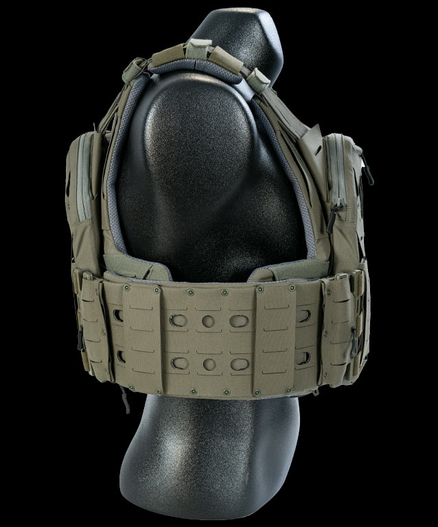 - Shoulder straps with rubberized surface, Tank Track® laser cut slits, with front and rear adjustment