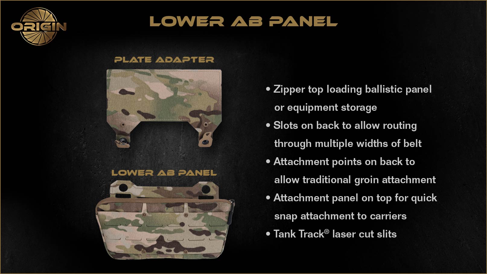 - Cummerbund with Tank Track® laser cut slits, Snap Track system, and infinity adjustment allows it to guide into carrier